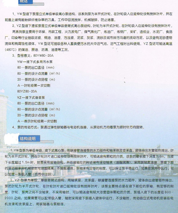 產品名稱:YW液下泵